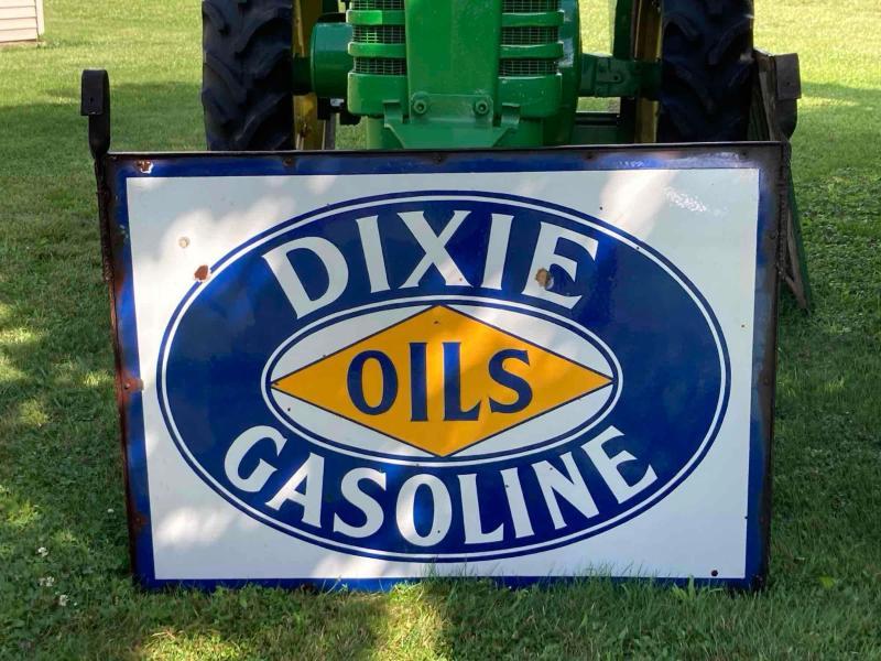 Rare Original Double Sided Porcelain Dixie Gas and Oils Sign with Bracket